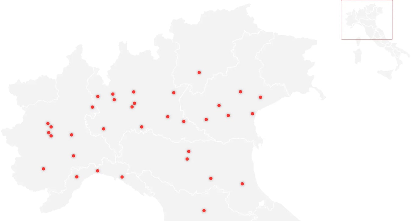 La nostra azienda vanta una vasta rete di tecnici che copre l'intero Nord Italia e altre regioni d'Italia. Grazie a questa capillare presenza, siamo in grado di coordinare un intervento tecnico in tempi rapidissimi, anche in caso di urgenze. Per la maggior parte delle richieste, possiamo programmare l'installazione entro soli sei giorni. Inoltre, affidandoti a noi, avrai sempre a disposizione un tecnico locale, esperto e affidabile.